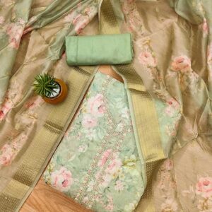 Be the first to review “Saree Women’s Organza with Handwork Embellishments Salwar Suit Dress Material”
