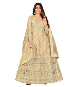 Be the first to review “Women’s Net Semi Stitched Gown Top With Satin Silk Fabric Bottom & Net Dupatta Embroidered Anarkali Dress”